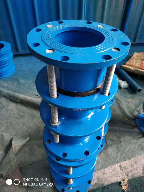 4、限位伸缩接头,在松套伸缩接头原有性能的基础上增设限位装置,在大伸缩量处用双螺母锁定。管道在允许的伸缩量中可以自由伸缩,一旦超过其大伸缩量就起到限位,确保管道的安全运行,特别适用于有振动或有一定斜度及拐弯的管路中的连接。